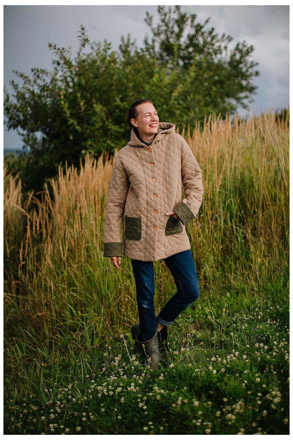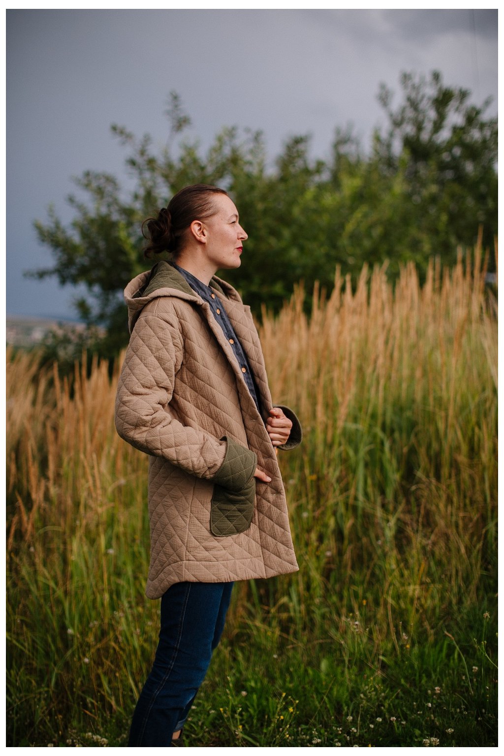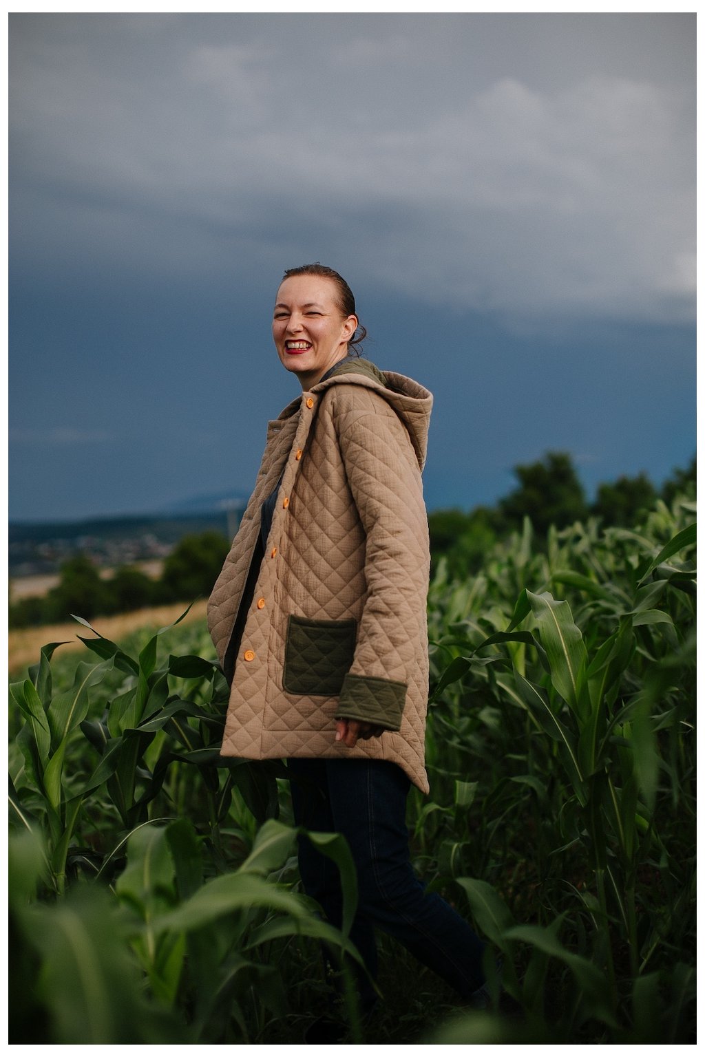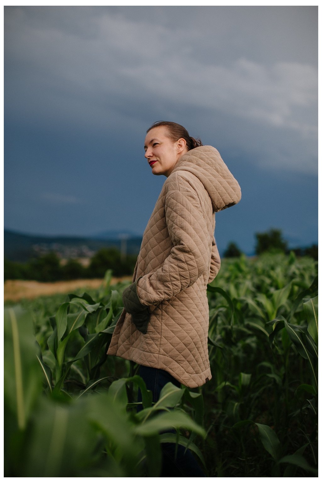 Hrejivá zateplená bunda z prešívaného mušelínu s kapucňou a vreckami. Bunda je vhodná na chladné jarné a jesenné dni alebo teplú mestskú zimu.