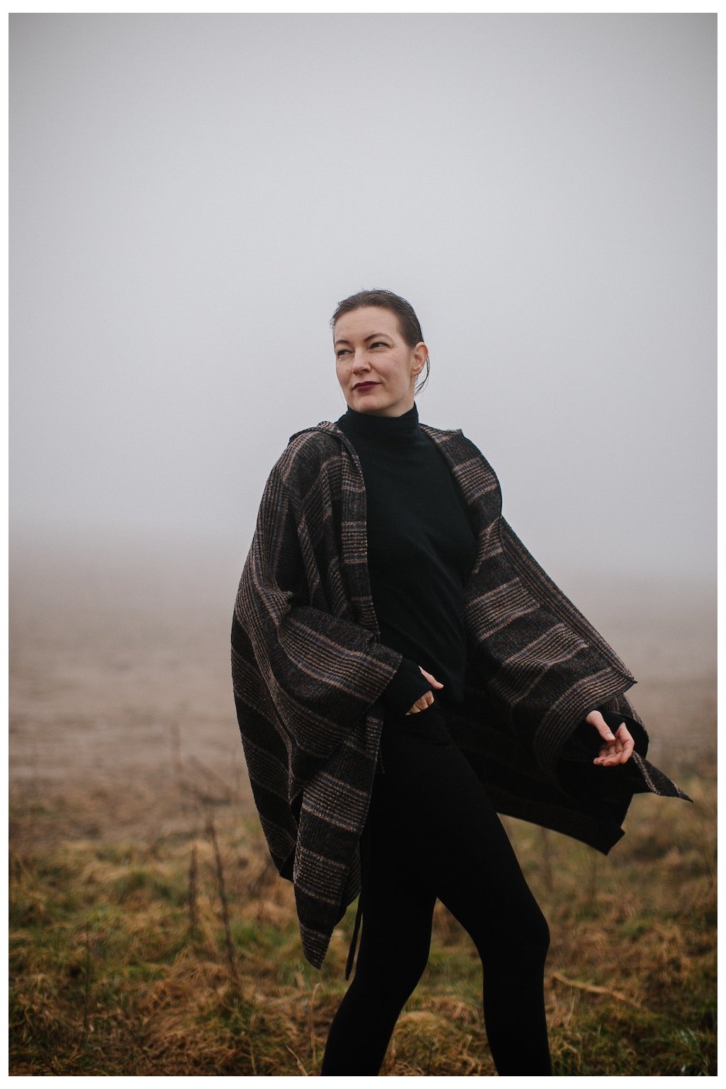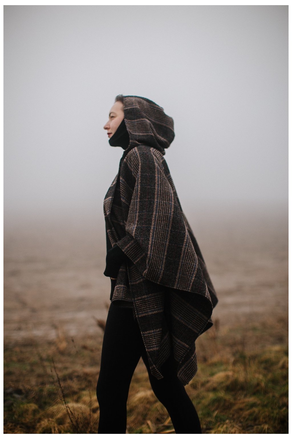 Vlnené pončo s kapucňou a opaskom v univerzálnej veľkosti vhodné pre všetky typy postáv.