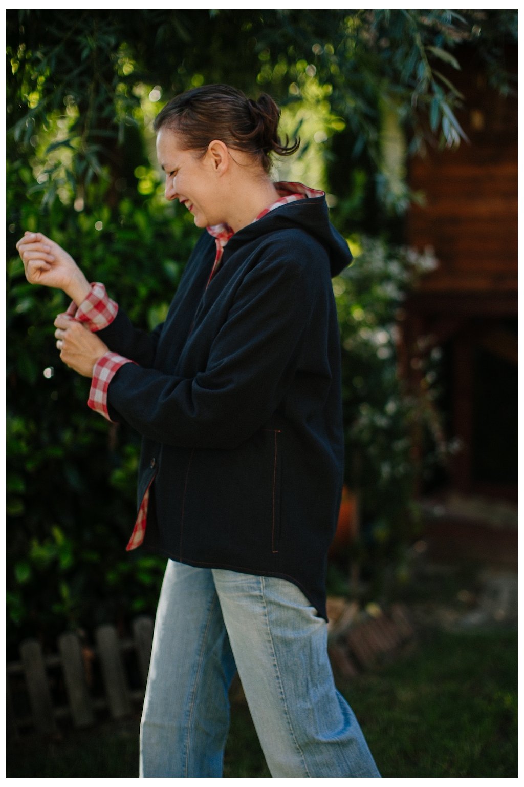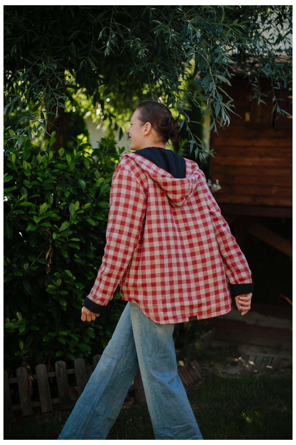 S láskou navhrnutý plnohodnotne obojstranný kabátik ľan-ľan s kapucňou. Na oboch ľanových stranách má praktické vrecká. Farebnú kombináciu si navrhujete vy samé kombináciou oboch vrstiev ľanu podľa vlastného výberu. Dostupný v tradičných konfekčných veľkostiach od 34 až po 42.