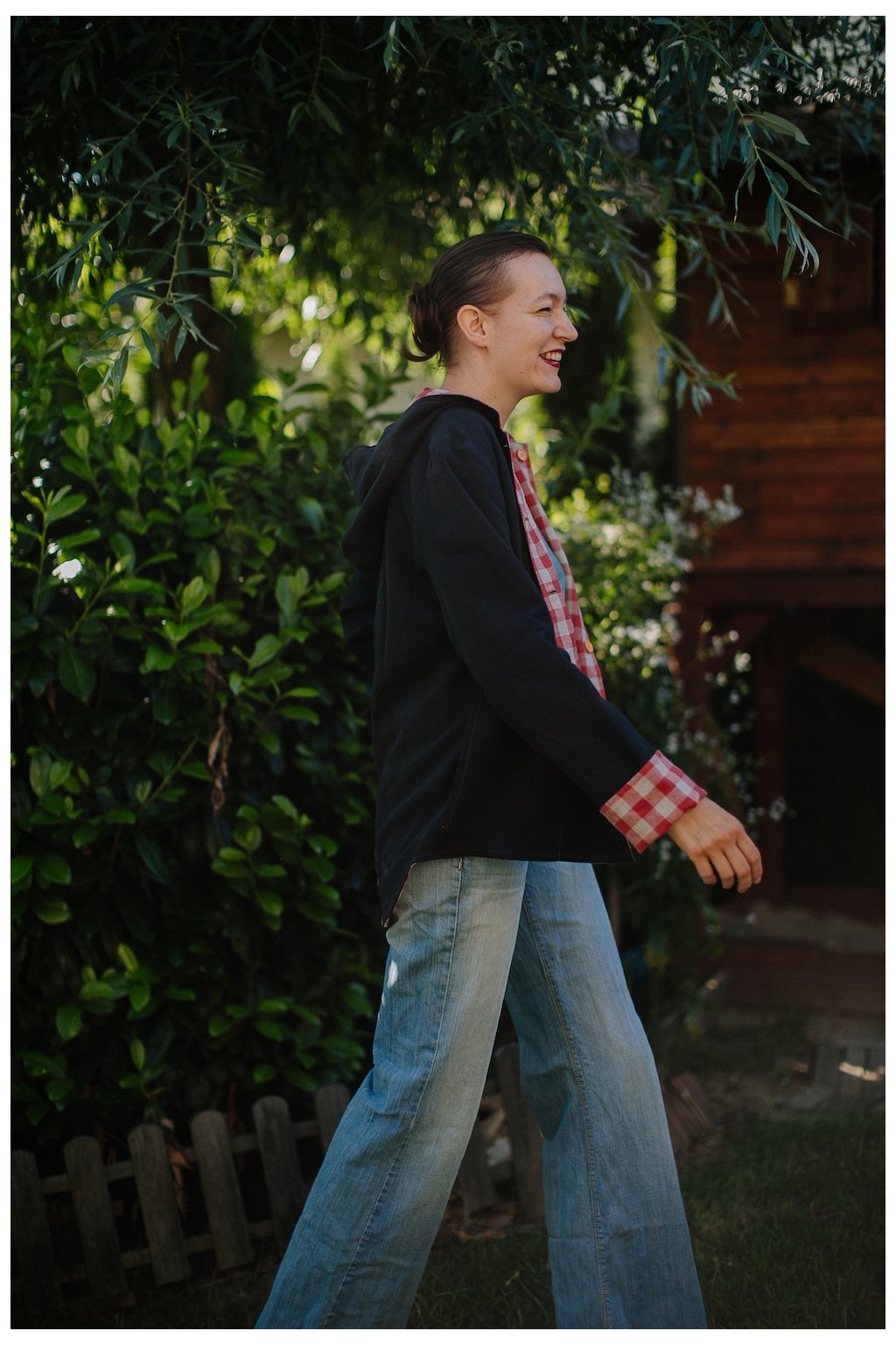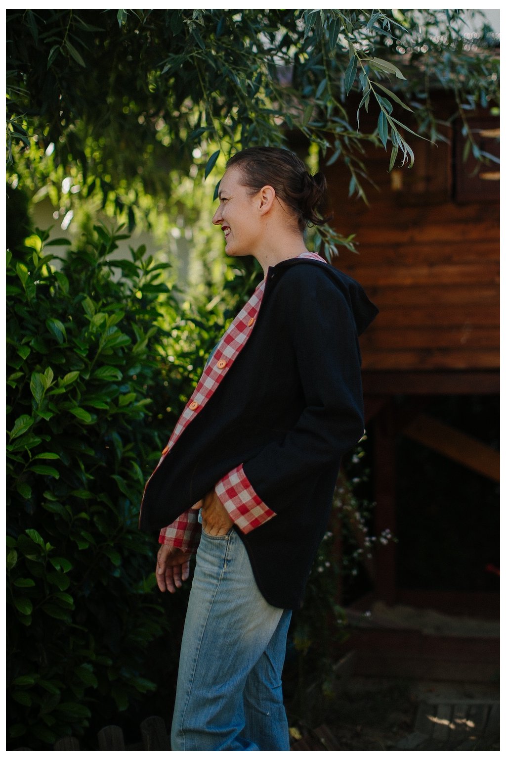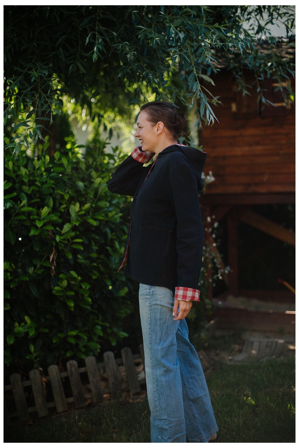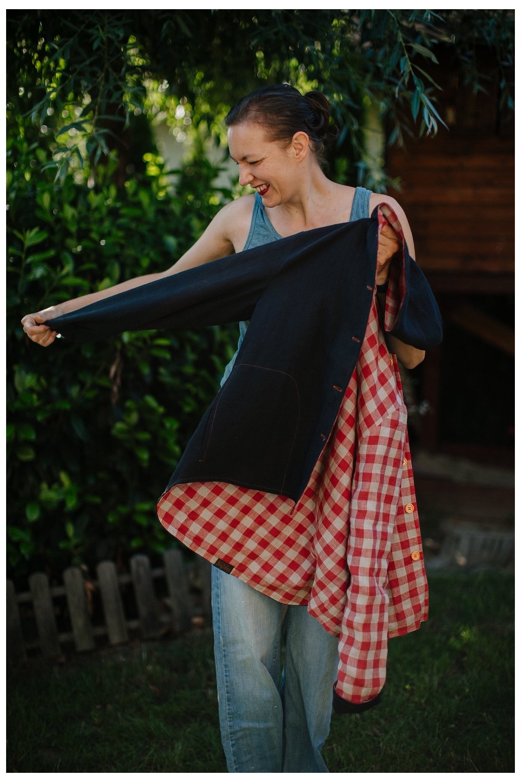Obojstranný ľanový kabátik plnohodnotne nositeľný z oboch strán.