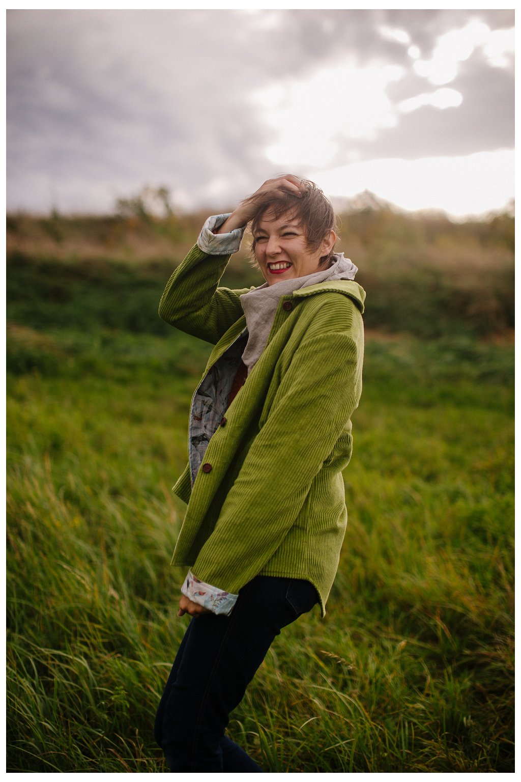 Obojstranný menčestrovo-ľanový kabátik pre dámy.