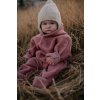 Detský overal z vlneného fleecu s kapucňou a prekladmi na rúčkach a nohách.