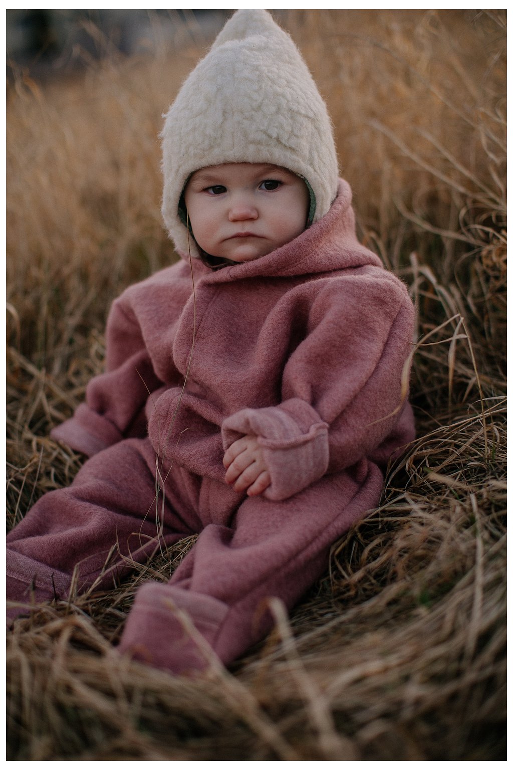 Obľúbený vlnený overal od Dorfsheepu sa dočkal menšej inovácie. Overený strih sme ponechali a zmenili len materiál. Namiesto 100% varenej vlny sme v tomto prípade použili vlnený fleece, vďaka čomu je tento overal na dotyk omnoho jemnejší. Preto je vhodnejší pre novorodeniatka a malé bábätká. Vynosia ho však s obľubou isto aj väčšie deti.