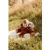 Vlnený overal od Dorfsheepu je vyrobený zo 100% varenej vlny, vďaka čomu ho možno využiť ako plnohodnotný jesenný a zimný overal. Má preklady na rúčkach a nožičkách pre teplotný komfort vašich detičiek.
