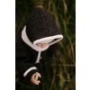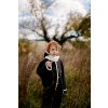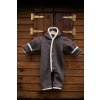 Detský štýlový overal z varenej vlny s kapucňou a prekladmi na rúčkach a nohách.