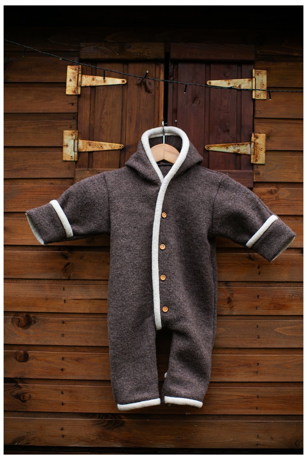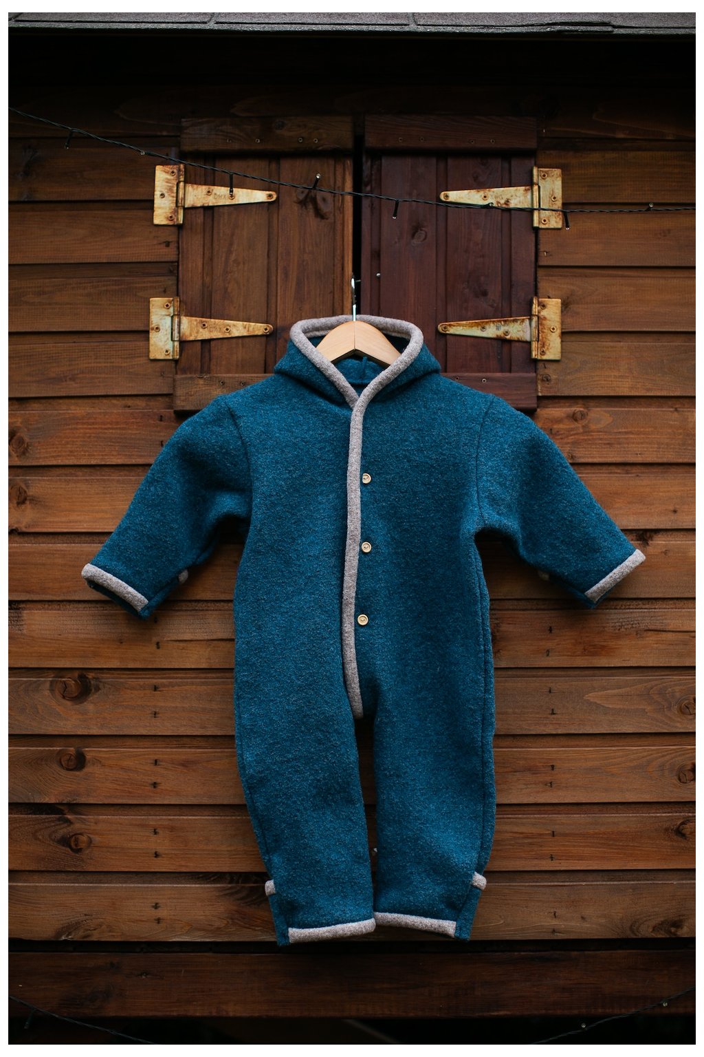 Štýlovo olemovaný vlnený overal od Dorfsheepu je vyrobený zo 100% varenej vlny, vďaka čomu ho možno využiť ako plnohodnotný jesenný a zimný overal. Dostupný je vo veľkostiach 50-116.